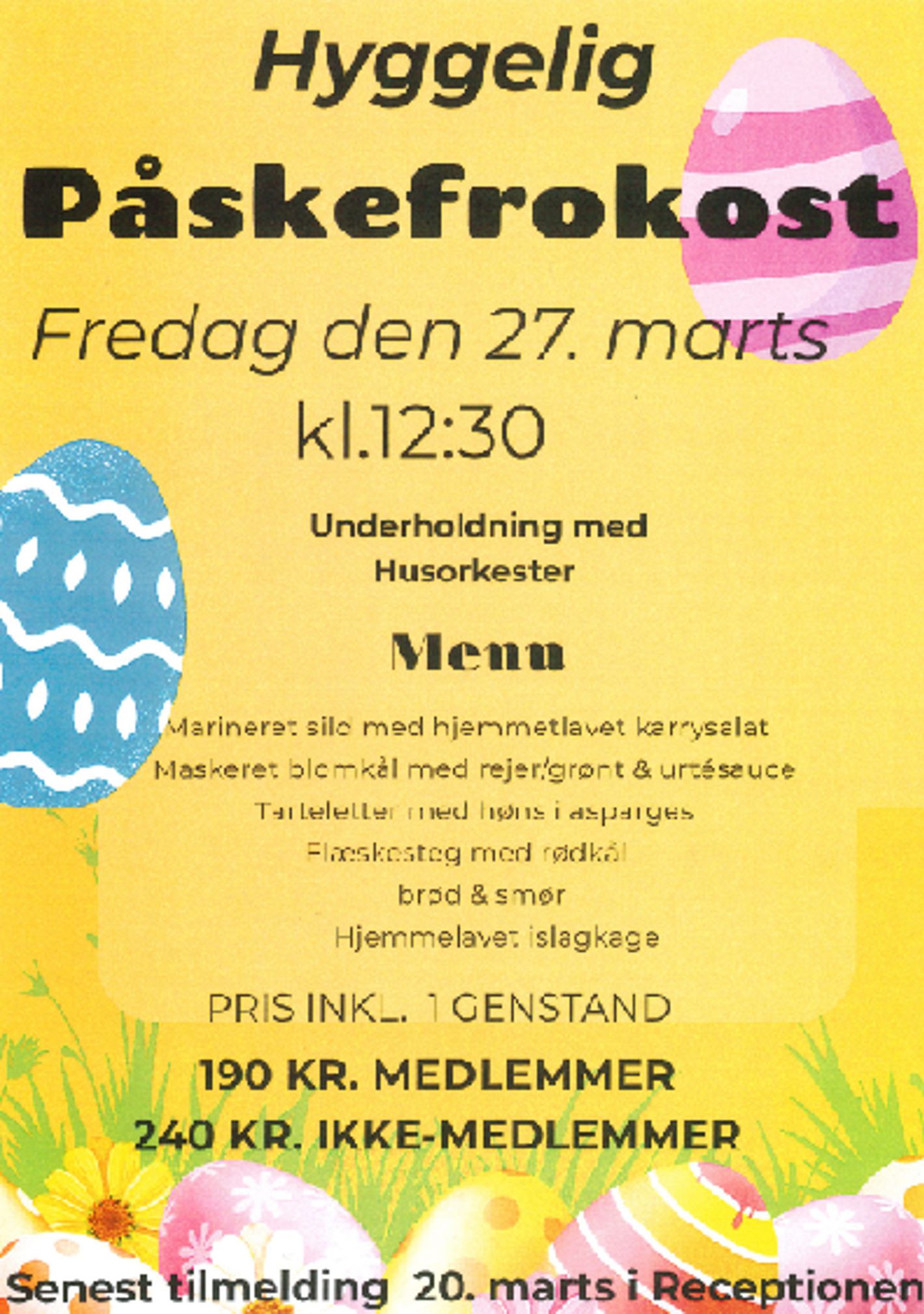 Kom og vær med til årets hyggelige påskefrokost, hvor husorkestret vil stå for underholdningen.